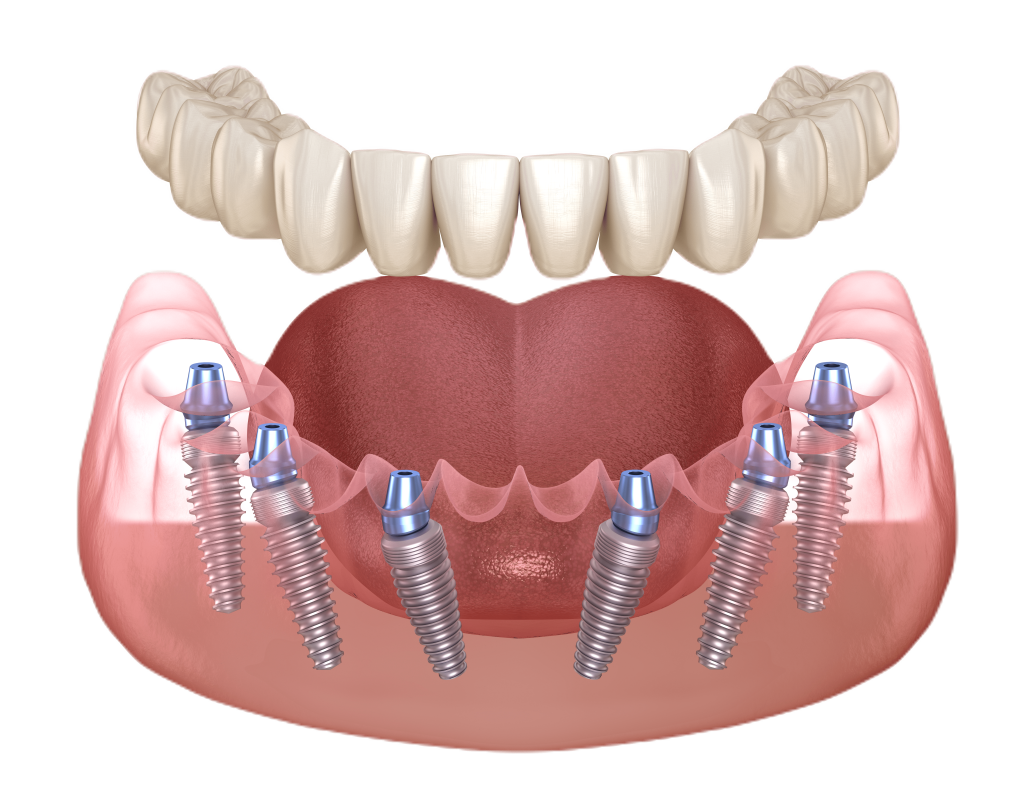 Si possono effettuare sia protesi totali su impianti, sia singoli denti su impianti.